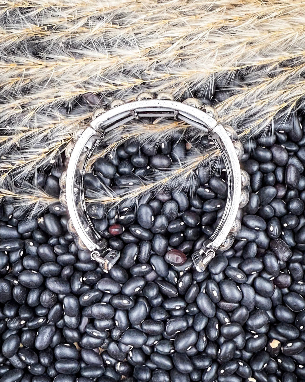 Featuring raised silver-tone hearts set against a matte black base, The Amora brings a romantic edge to your everyday wristwear. Each heart has a softly distressed finish that gives the piece that vintage, well-loved feel—like something passed down from generations of strong women before you. It’s full of character and made to shine in the light (and in the moments that matter most).
