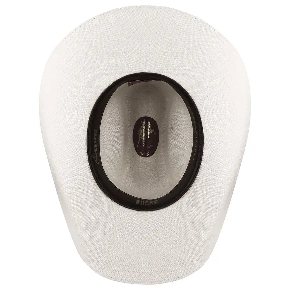 The Bailey Indio turns up the style without losing an ounce of grit. Woven from 15X Shantung Panama straw, it’s tough enough for the rodeo but clean enough for Saturday nights downtown. The 4" Rodeo cattleman crown delivers that bold Western silhouette, while the all-around venting in a zigzag pattern adds style and airflow where it counts. Finished with a sleek grosgrain hatband and Bailey’s signature logo pin, it’s a hat that speaks without shouting.
