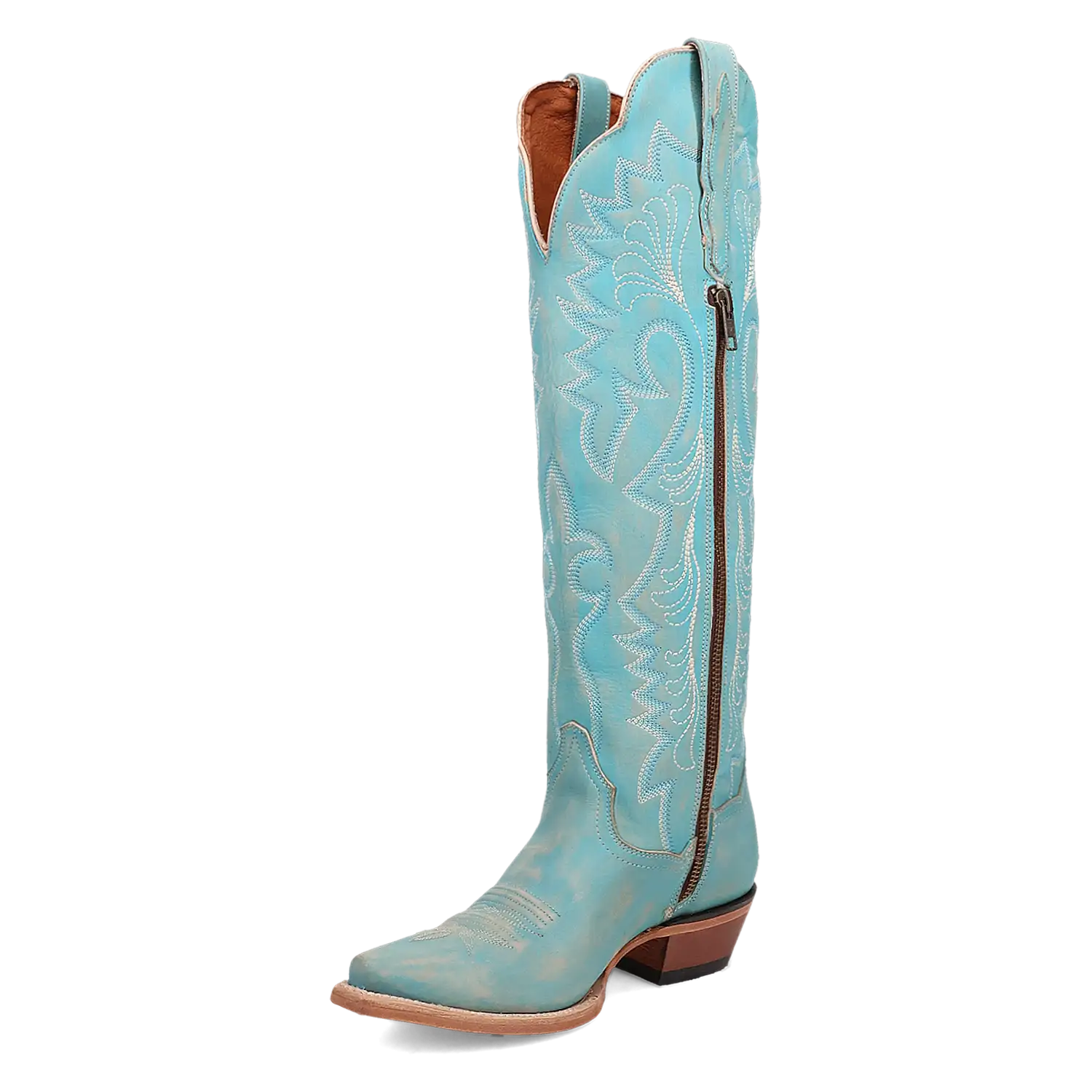 The Dan Post Celeste is designed to turn heads with its stunning 18” shaft, offering an elongated, elegant look that beautifully complements any outfit. Whether paired with a flowing skirt, a chic dress, or your favorite denim, this boot adds a touch of effortless Western charm.