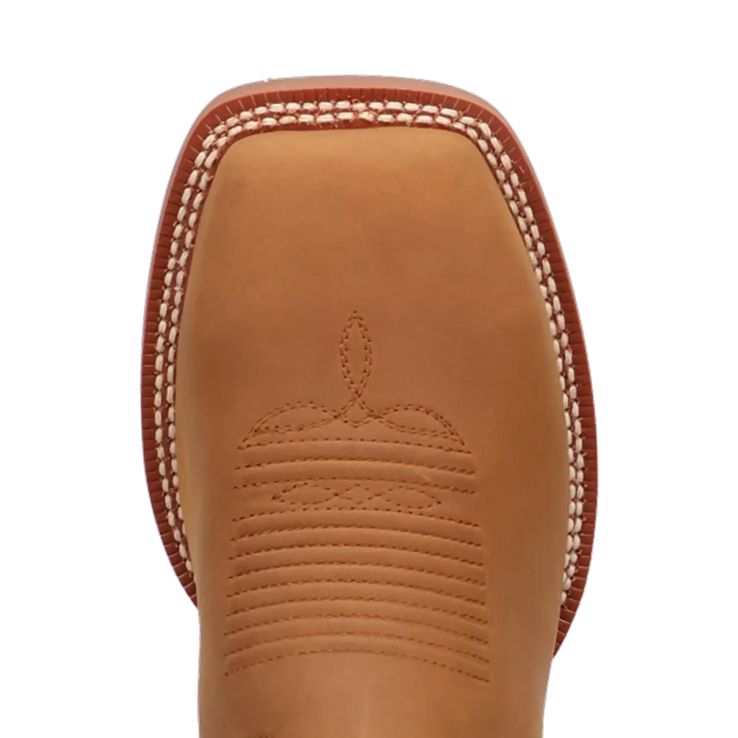 The tan leather shaft is detailed with classic embroidery that adds a sharp, clean finish to the boot’s rugged appeal. It's a design that means business—with just the right touch of character.