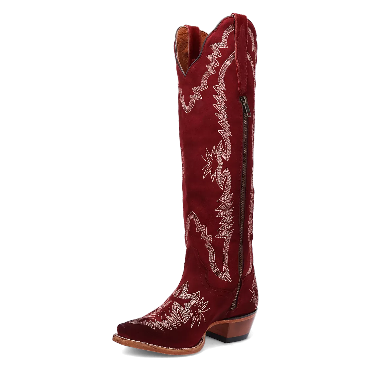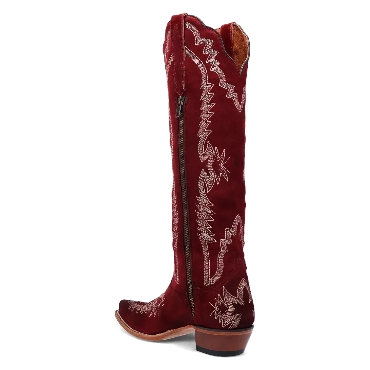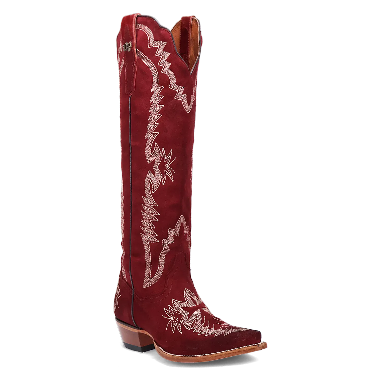 The Dan Post Marlowe Women's Suede Leather Cowboy Boots are a luxurious and elegant take on traditional Western footwear. Crafted from premium suede leather, these boots offer a soft, velvety texture that exudes sophistication and charm. The 18-inch shaft is beautifully detailed with subtle, intricate stitching, making these boots a standout piece in any wardrobe.