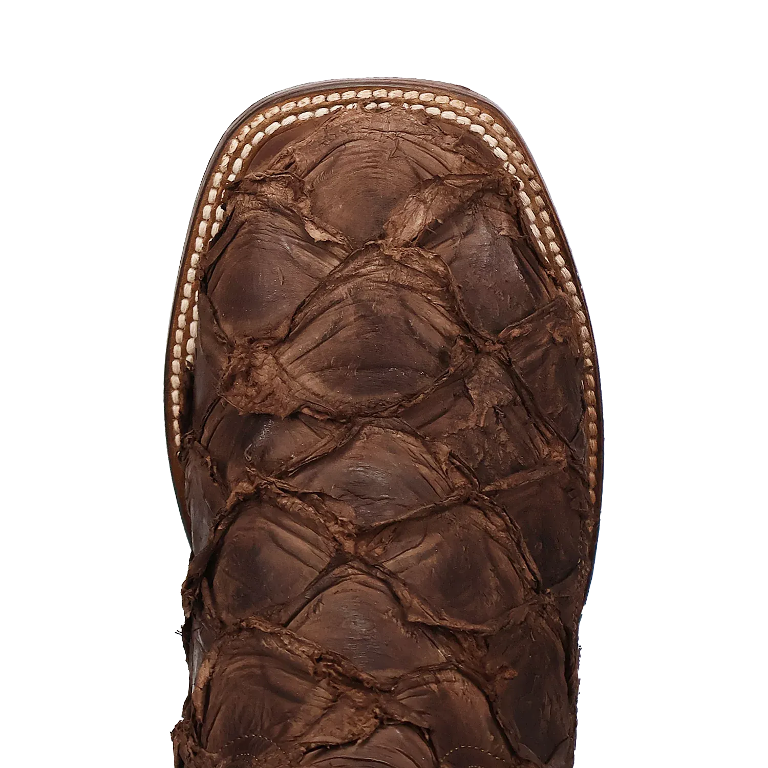 The Dan Post Raymond Men's Pirarucu Cowboy Boots are an exceptional blend of exotic luxury and practical Western style. Crafted from genuine pirarucu fish leather, these boots boast a unique and striking texture that stands out for its bold, natural scale patterns. The 11-inch shaft is designed with understated detailing, allowing the distinctive material to take center stage while maintaining a classic Western silhouette.