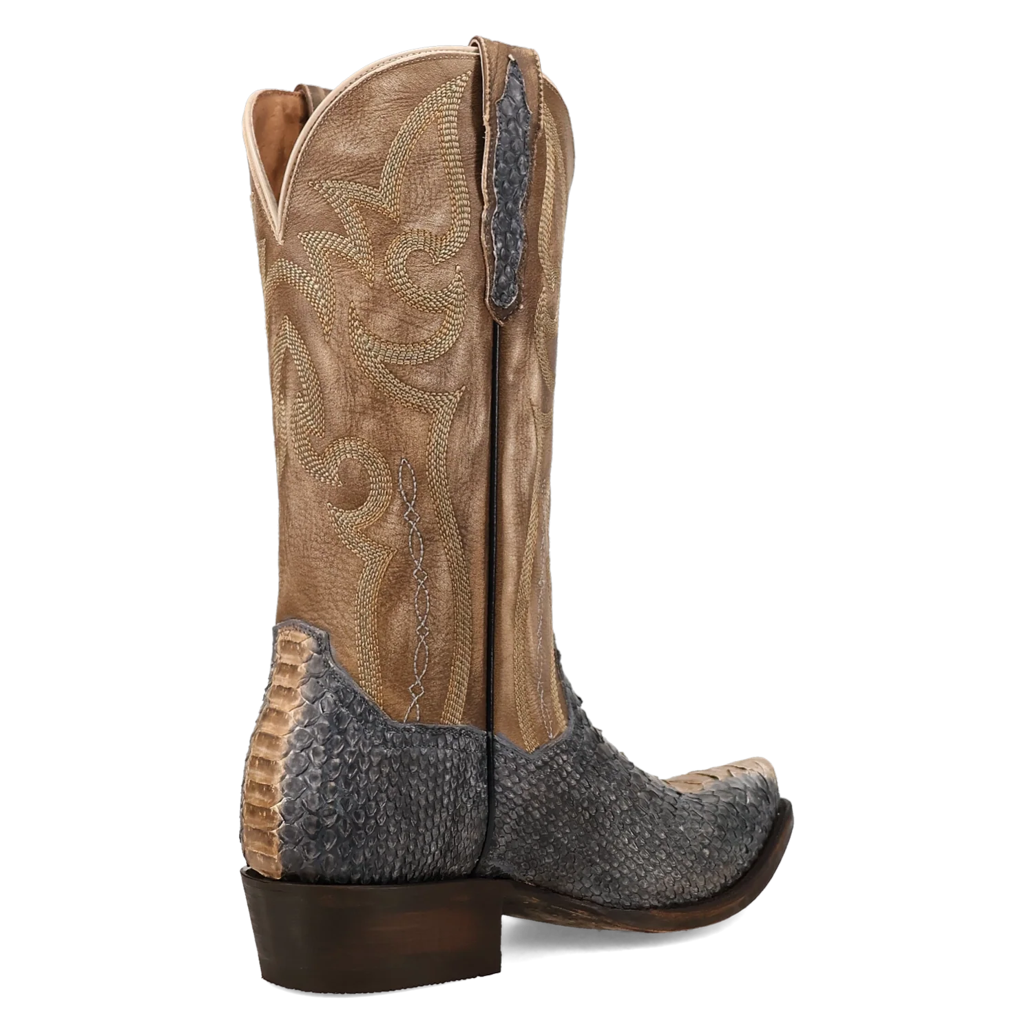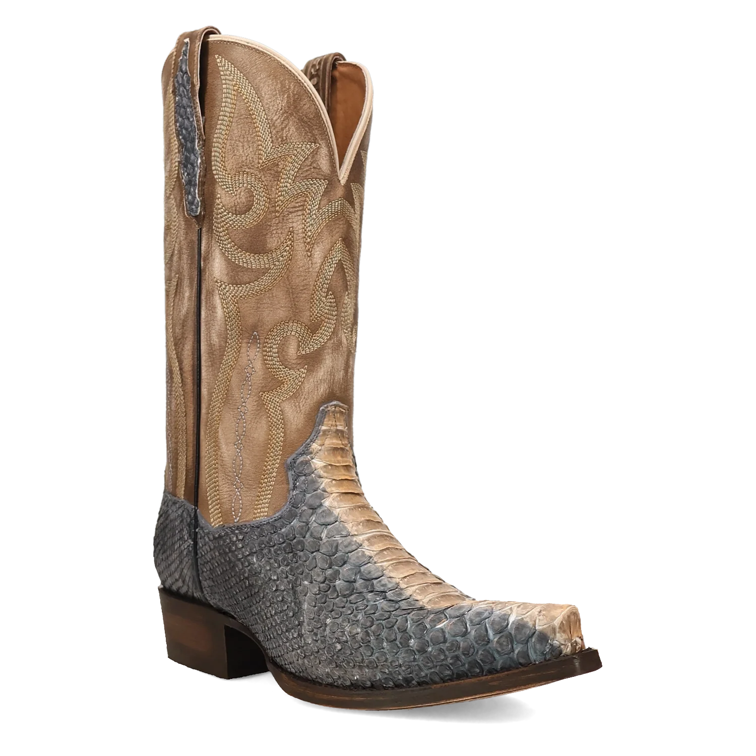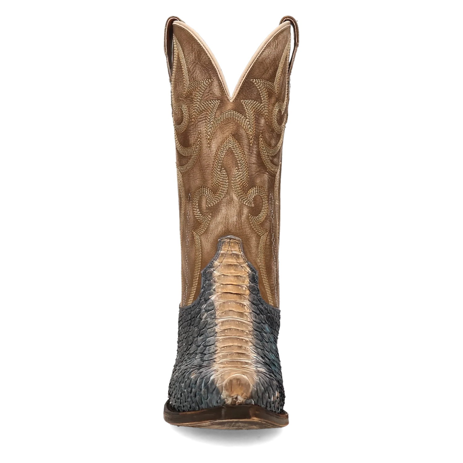 The Stryker boot makes a striking impression with its genuine python leather foot and expertly detailed Western embroidery along the 13-inch shaft. This exotic design delivers an unmistakable statement of rugged sophistication, crafted for the man who appreciates both bold style and fine craftsmanship.