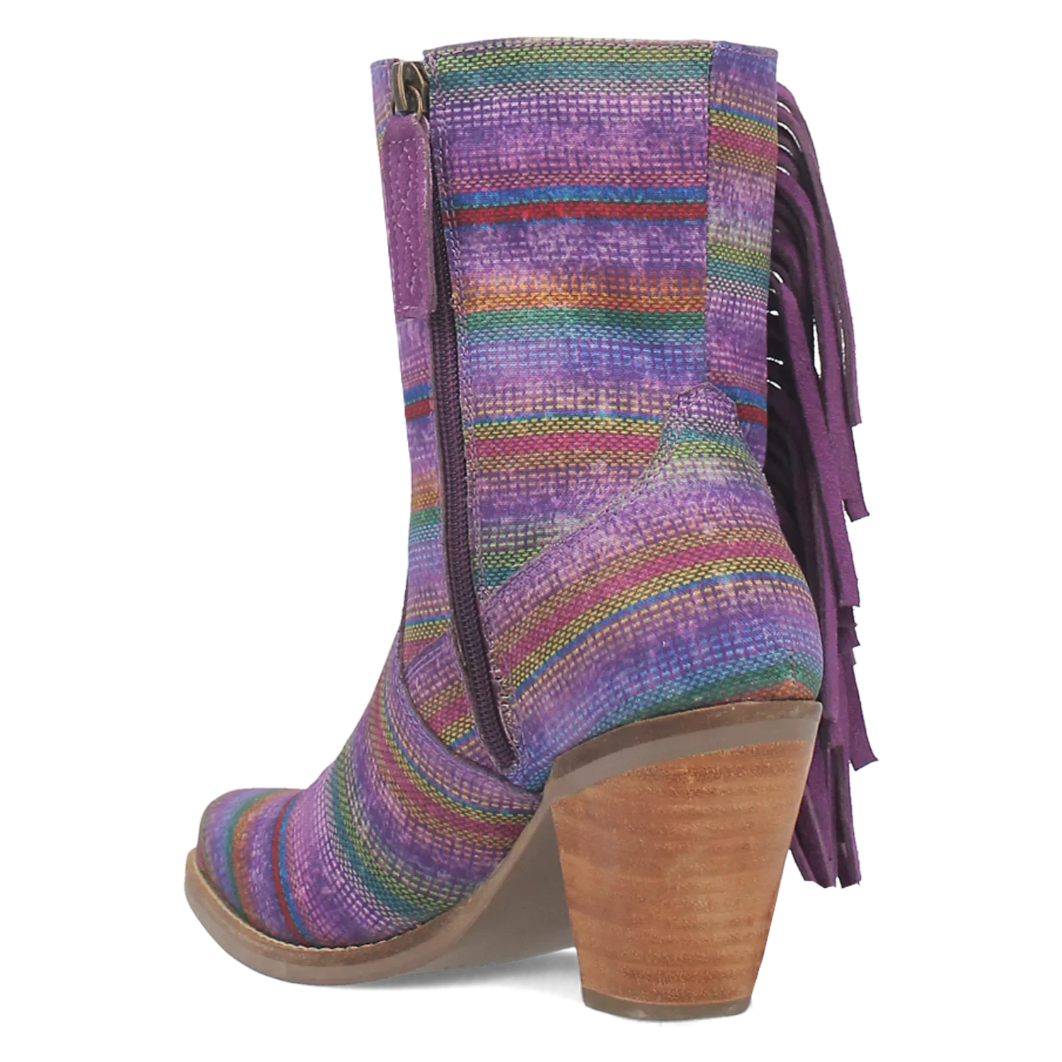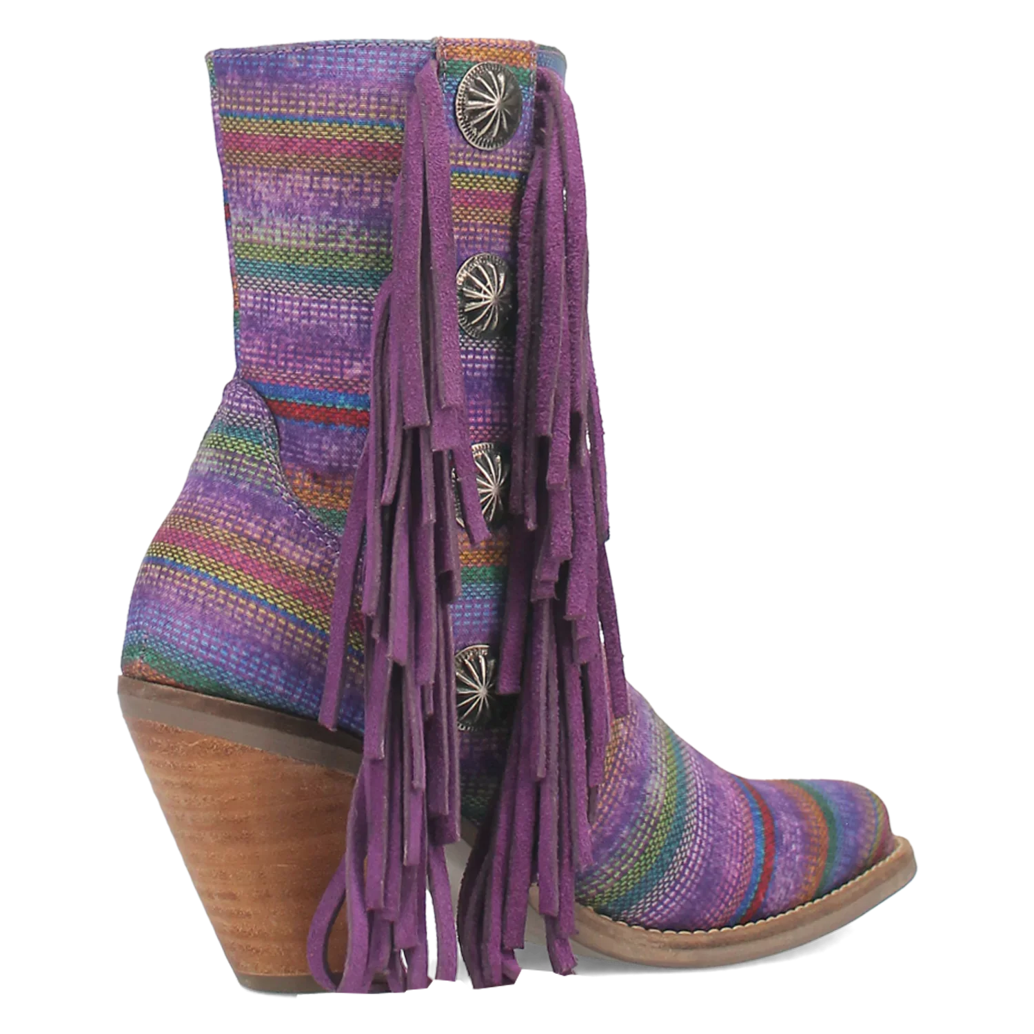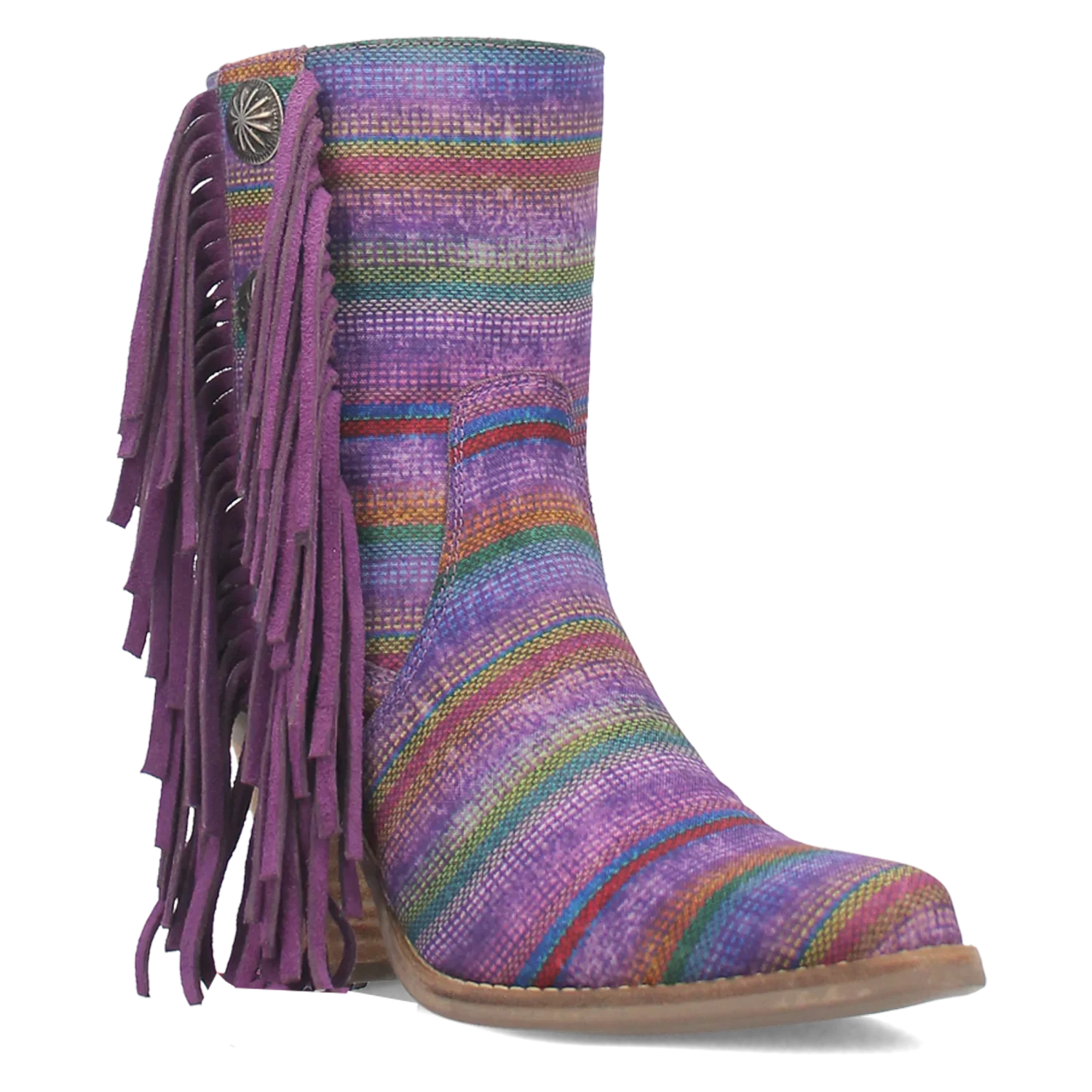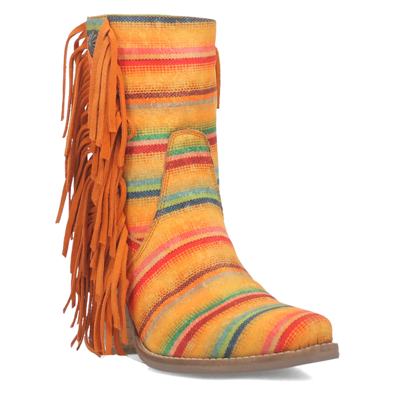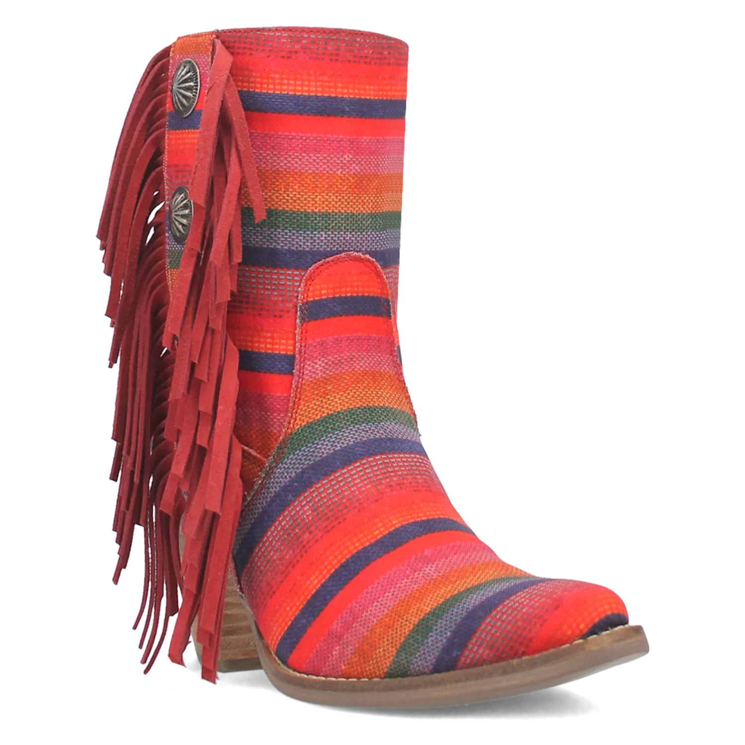 The Dingo Chili Pepper Women's Fabric Cowgirl Boots are a fiery blend of bold style and playful flair. With a 7-inch shaft, these boots are designed to stand out, featuring a fun and eye-catching fringe detail that sways with every step.