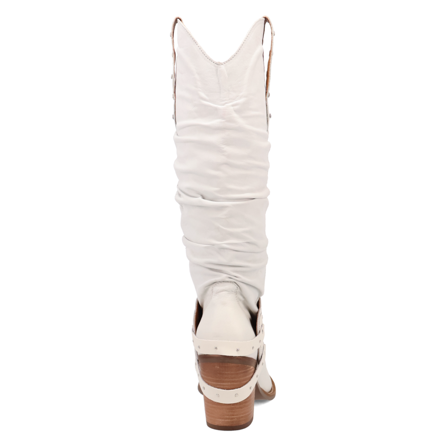 The Dingo Grit n' Grace is a statement boot with bold attitude and a vintage soul. Made from rich suede leather, this tall boot features a softly slouched 16" shaft with a scalloped collar and pull straps for easy wear. Embroidered detailing winds around the shaft and vamp, while metal studs and a scalloped harness across the ankle bring a fierce edge to the design.