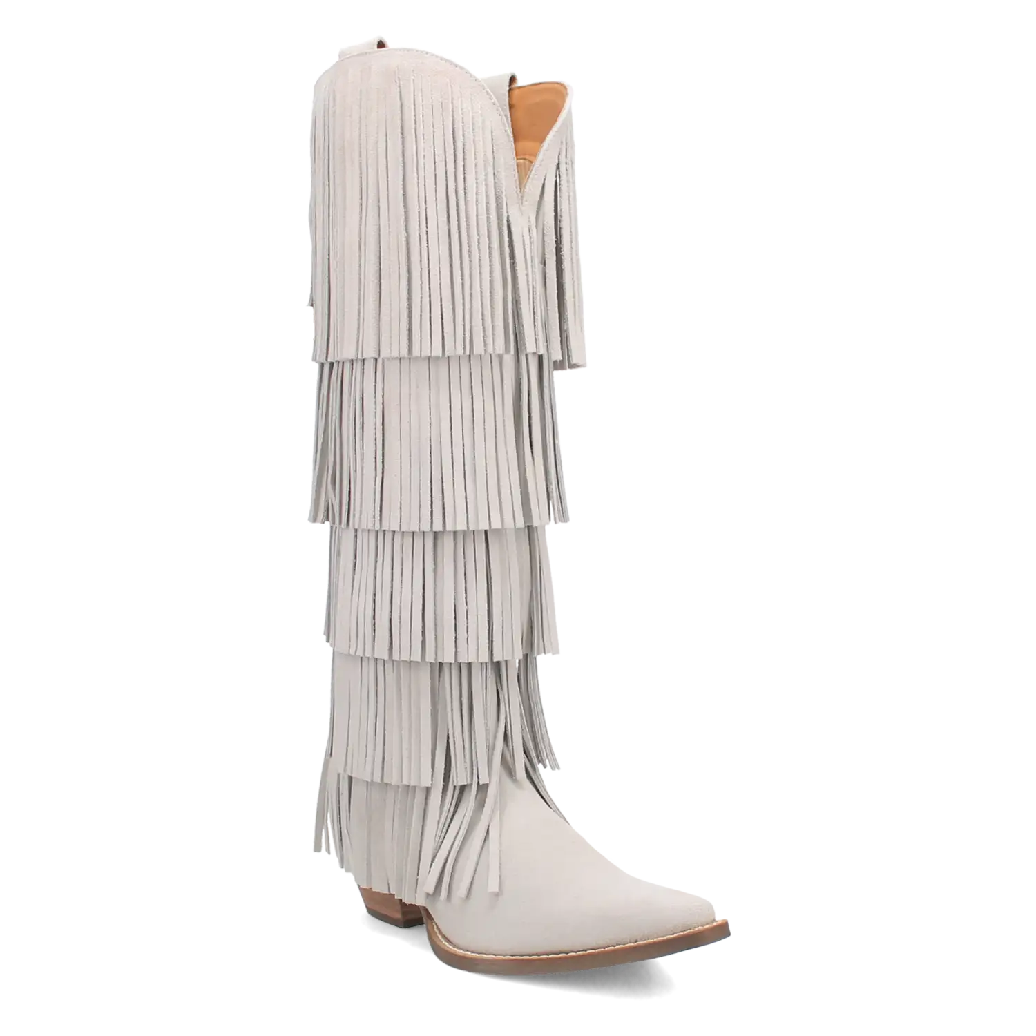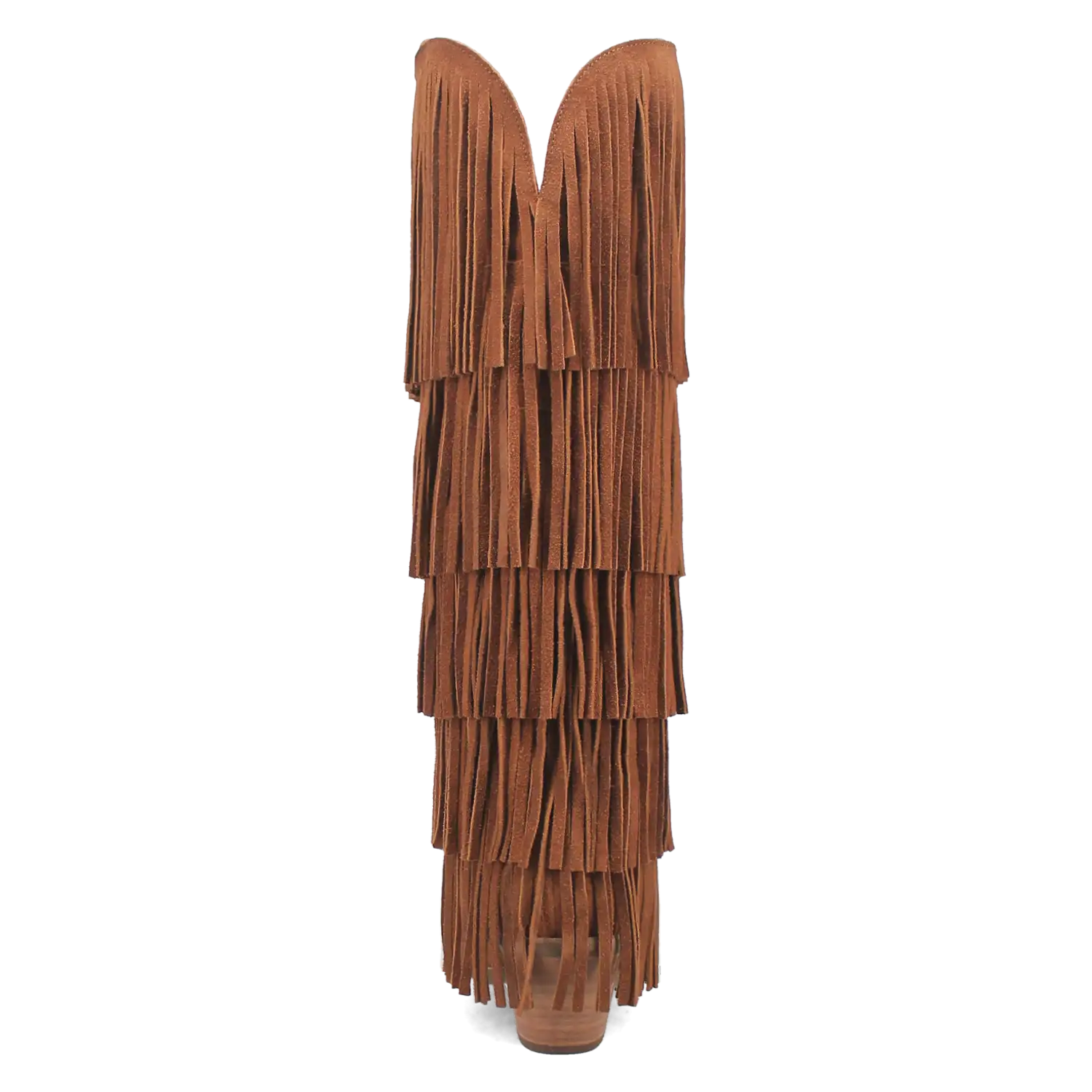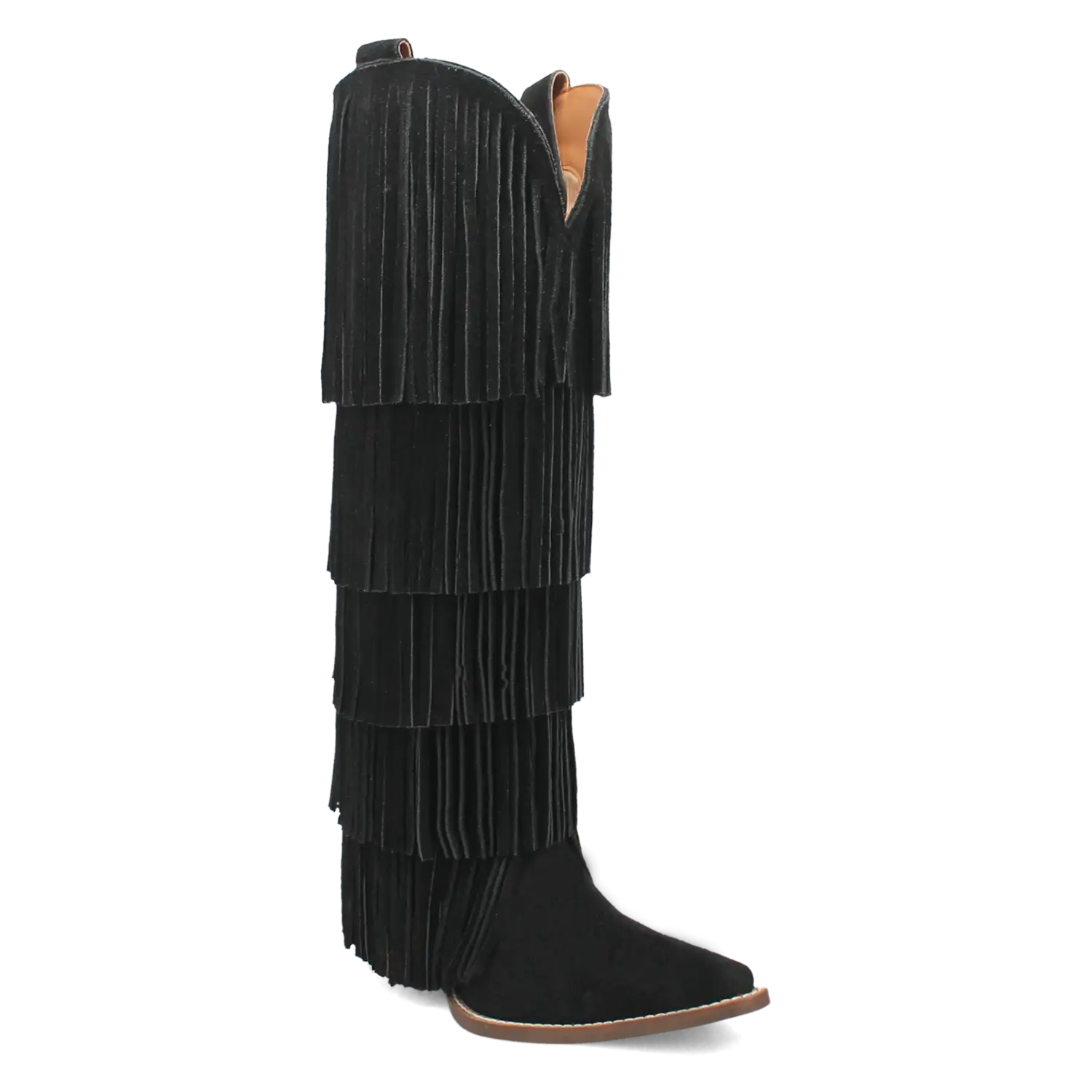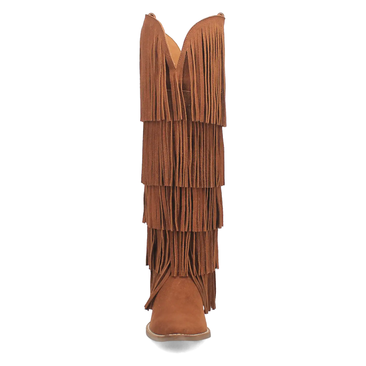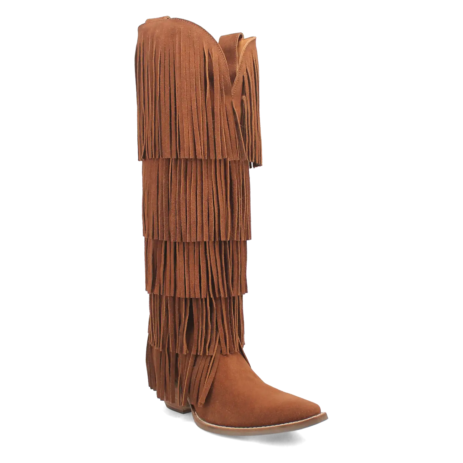 Let Your Wild Side Shine with the Dingo Wild Child boots! Crafted from sumptuous suede leather, these boots feature cascading tiers of fringe that create eye-catching movement with every step. Whether you're walking into a room or dancing the night away, these boots will have you turning heads. Available in various colors, you can find the perfect shade to match your bold and free-spirited vibe.