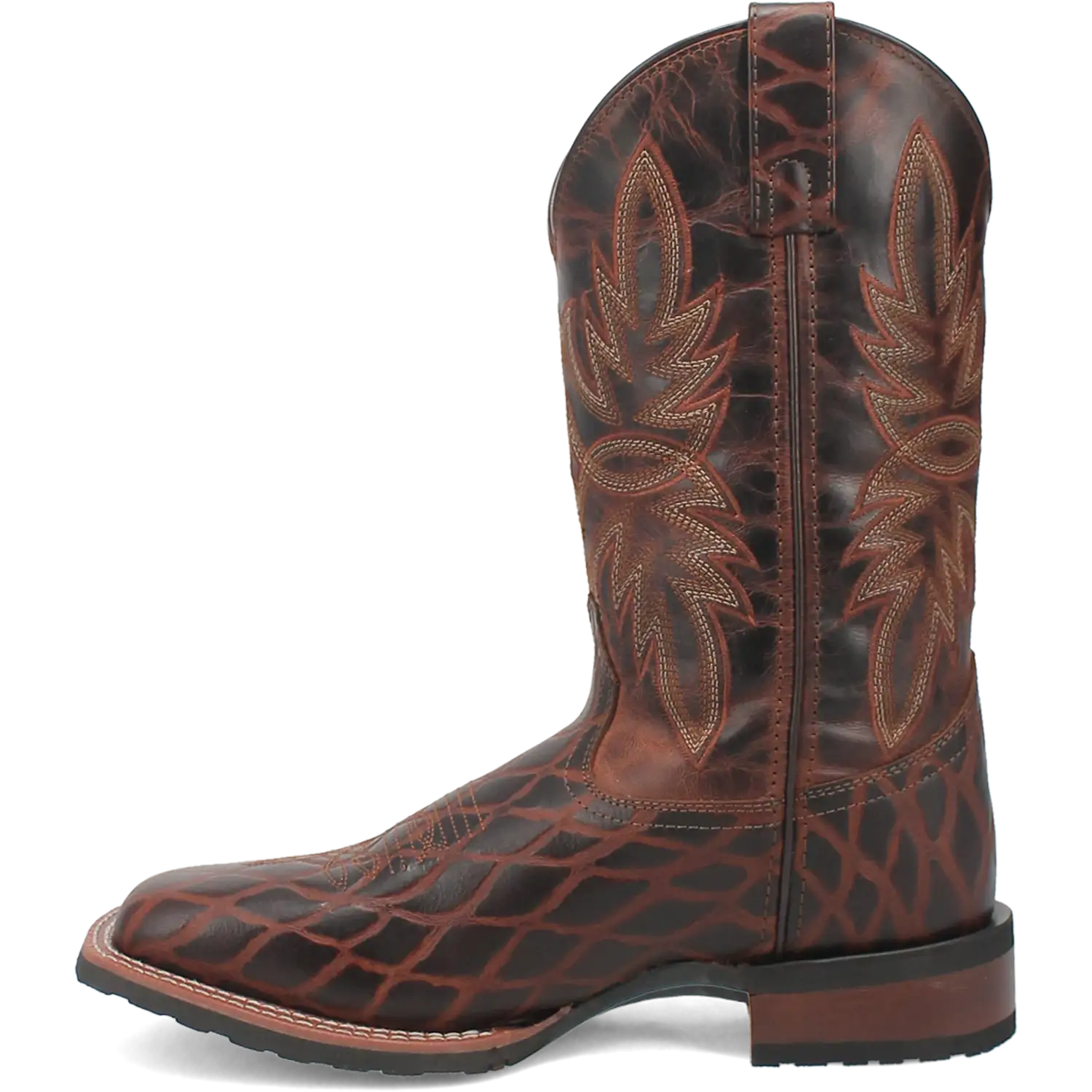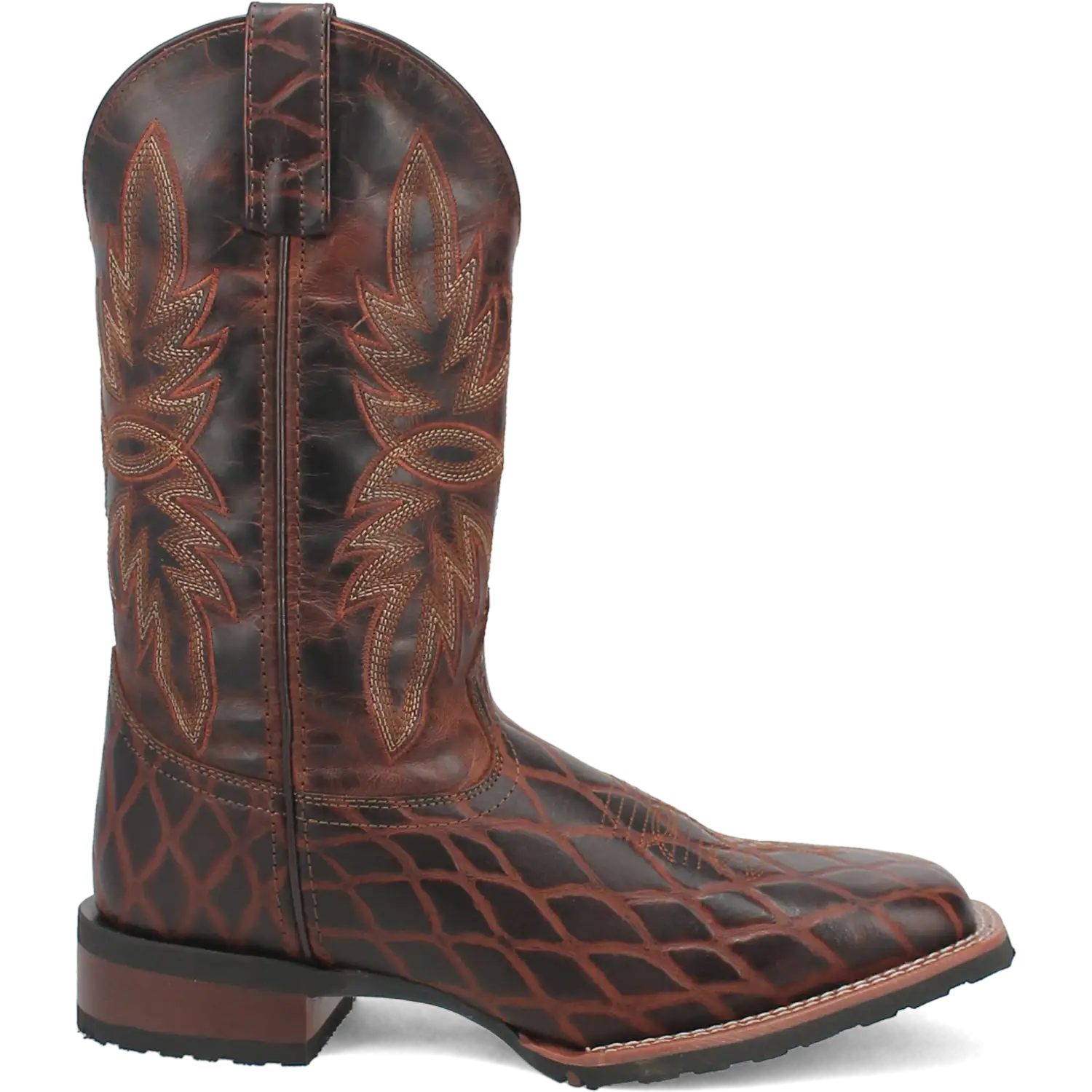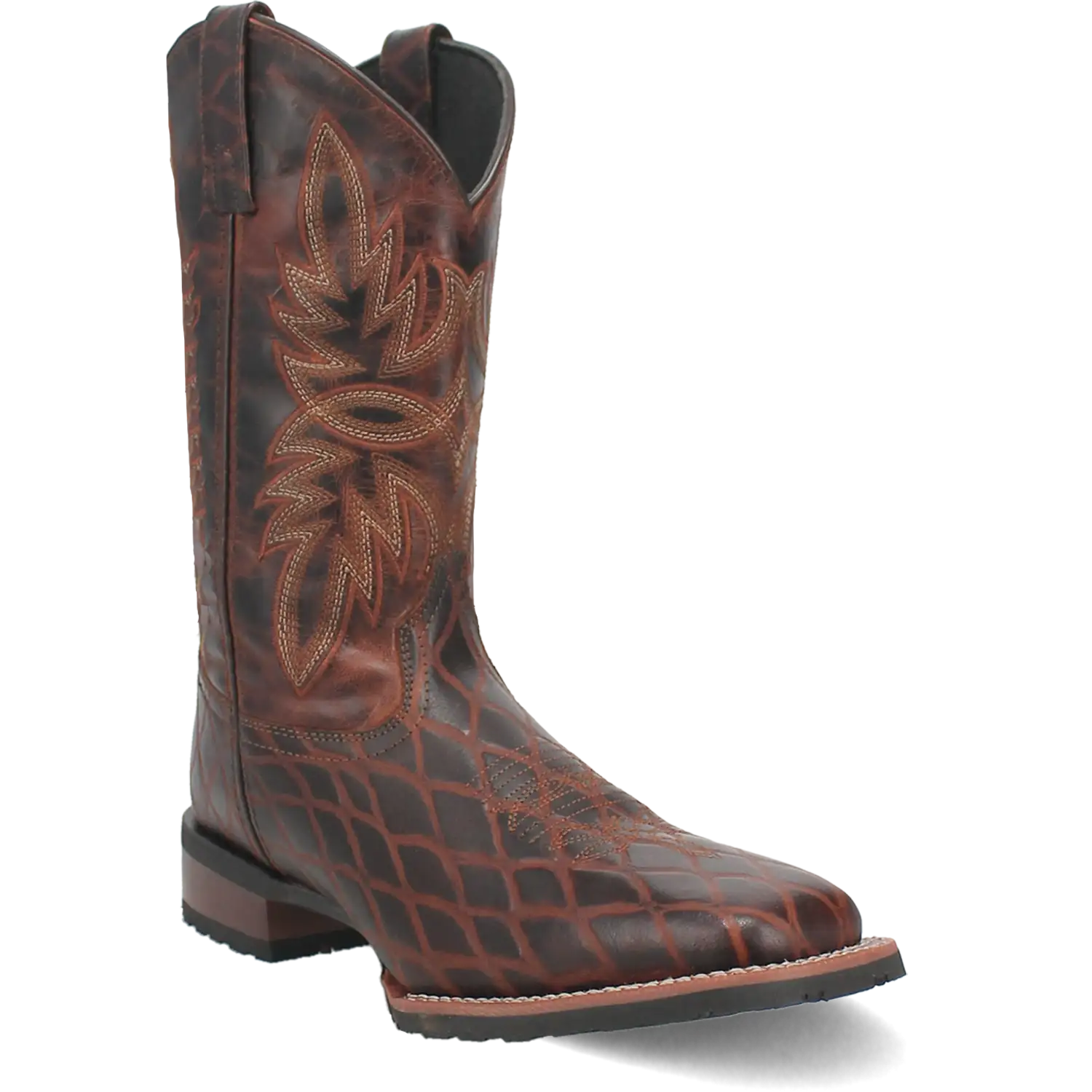 Rugged style meets all-day comfort with the Laredo Grid Cowboy Boot. Designed for the man who values both form and function, this boot features an eye-catching distressed shaft with bold Western embroidery, giving it a worn-in, lived-in look that’s full of character. The vamp showcases a unique grid-like pattern, adding a modern edge to this classic cowboy design.