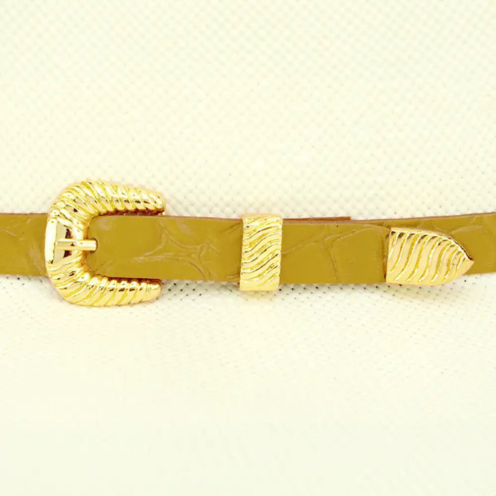 - Ostrich Hat Band with Three-Piece Gold Tone Buckle Set