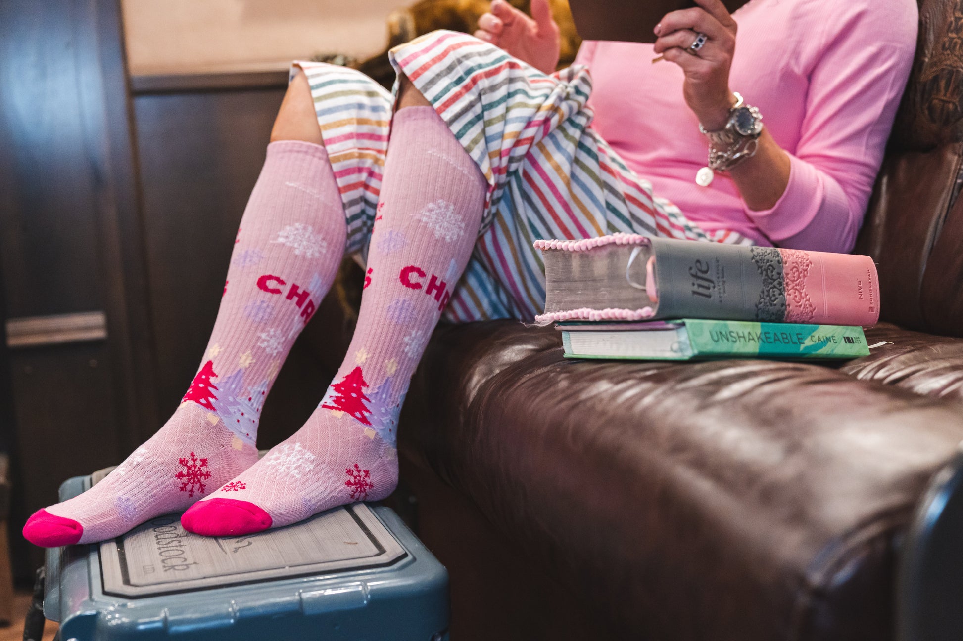 Merry Christmas Y'all Pink Performance Boot Socks