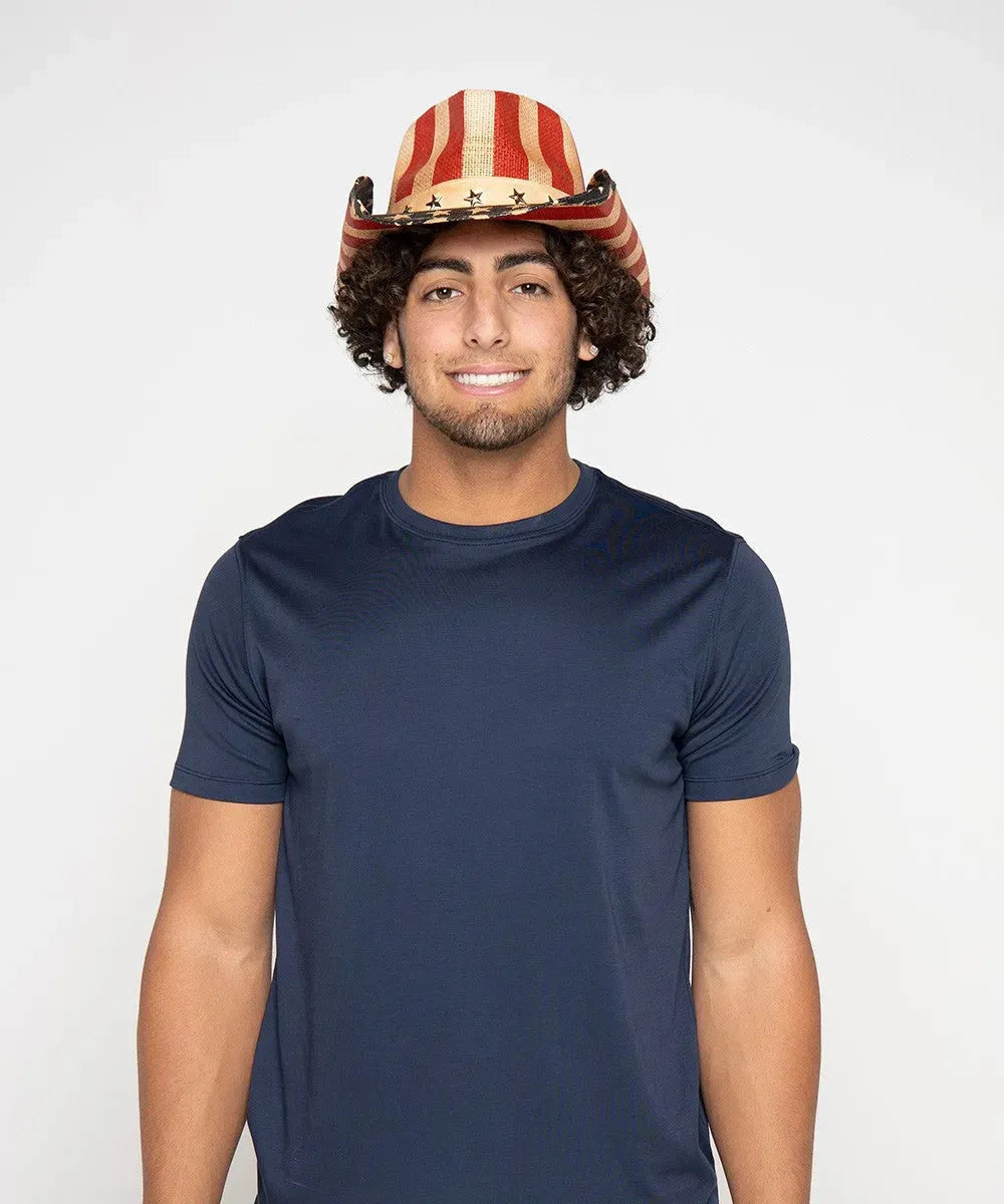 Whether you're attending a Fourth of July celebration, embarking on a scenic hike, or simply want to showcase your love for the USA, the Peter Grimm Justice Straw Cowboy Hat is a timeless accessory that exudes patriotism and style. Wear it with pride and let your American spirit shine.