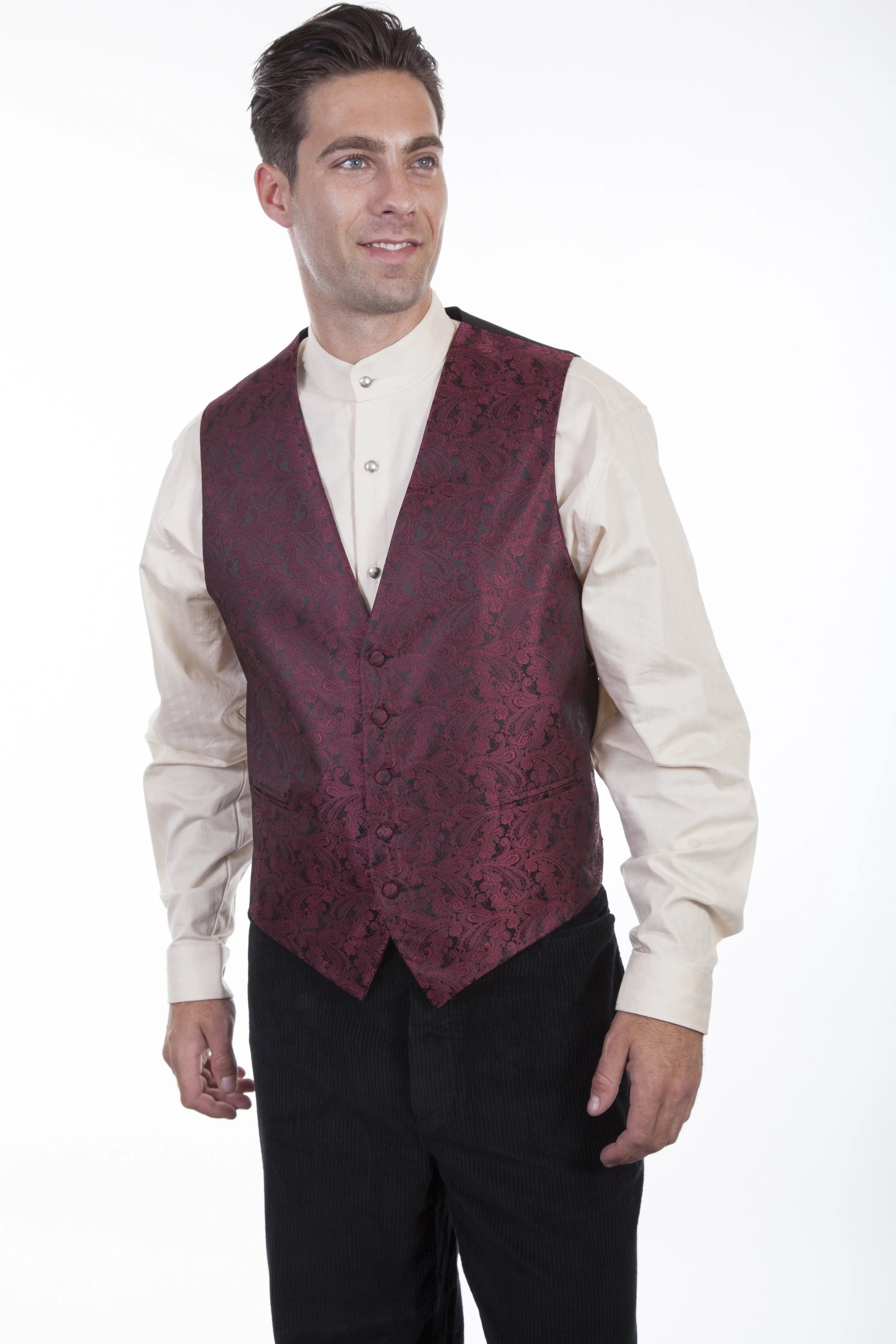 Step into timeless style with this classic paisley vest. Designed without lapels for a clean, refined look, it features a covered button front and two welt pockets to complete its traditional appeal. An adjustable back strap ensures the perfect fit, while the full lining makes it comfortable for all-day wear.