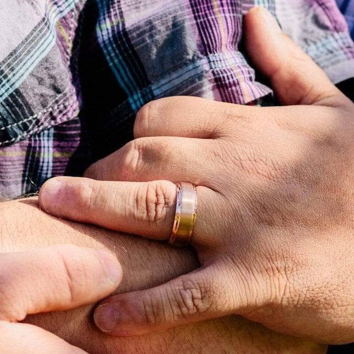 - Flat Stepped Edge Design in Comfort Fit with Satin Finish
