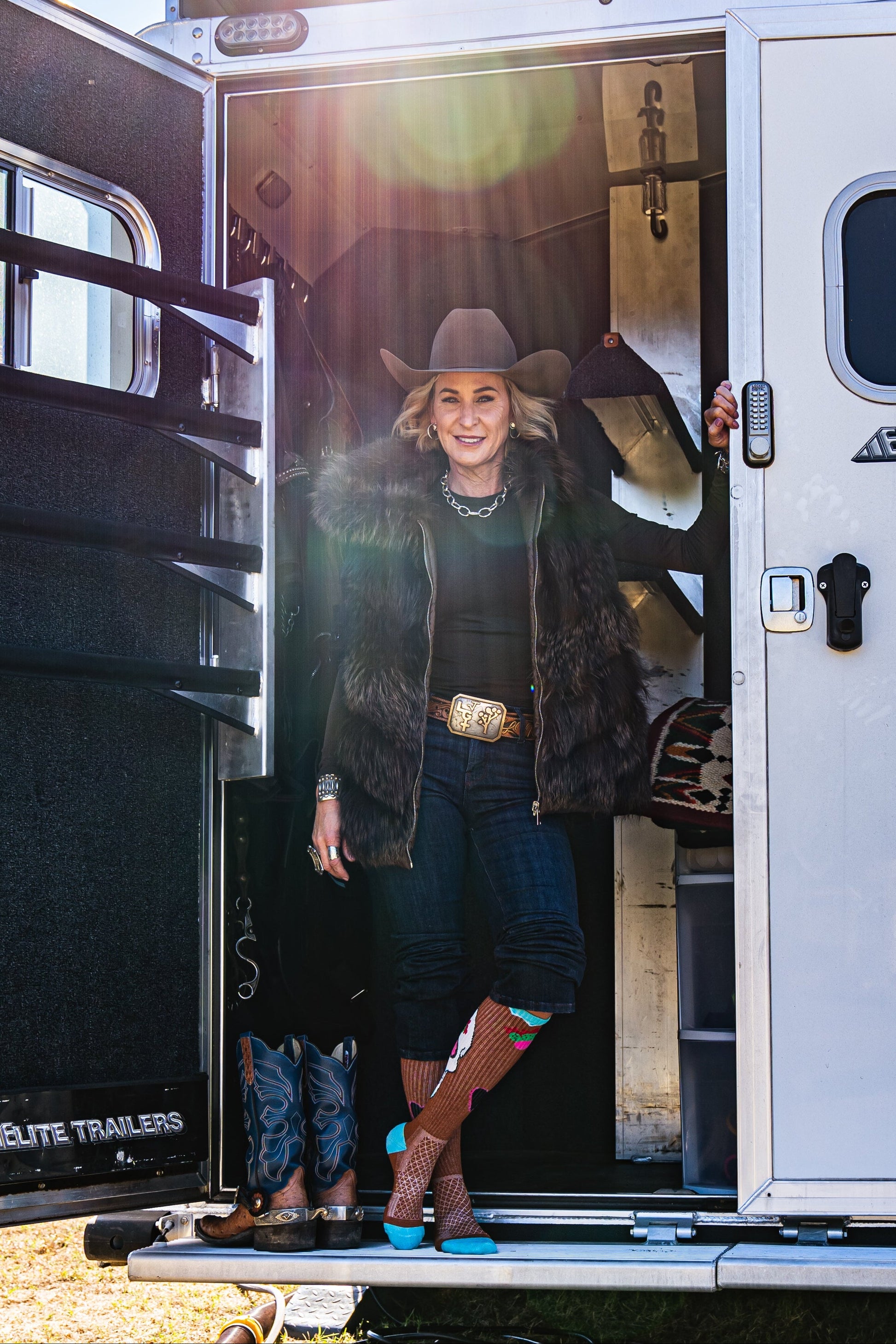 Designed by head cowgirl Lorinda Van Newkirk, it’s no surprise these riding essentials come pack with style and well-thought-out design. They are tall enough and stay up to protect your calves and never cut the circulation off. Lucky Chuck Performance Socks softens with every wash, but without wearing out ~ meaning even more chances to wear your lucky socks every day. Everyone deserves to wear a pair of LUCKY Chuck SOCKS!!